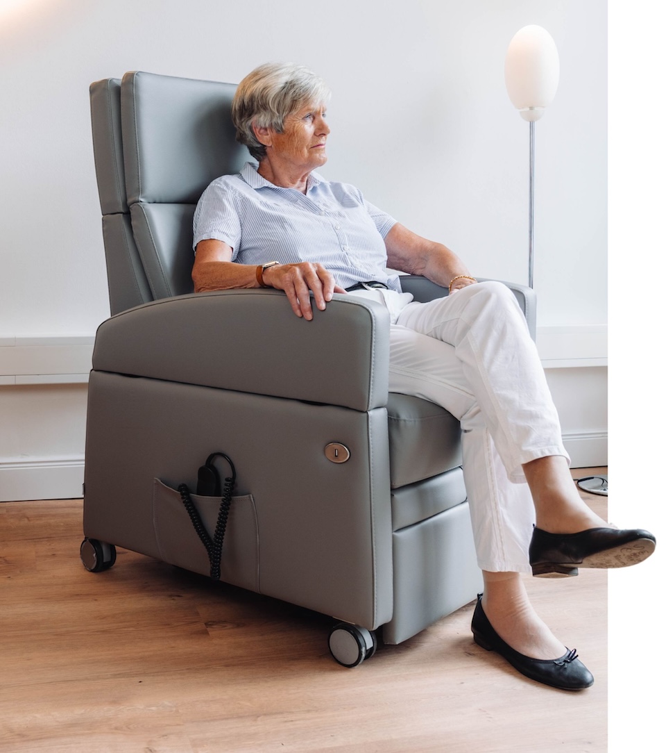Seniorensessel sind speziell für die Bedürfnisse älterer Menschen entwickelt und bieten daher eine optimale Unterstützung für Rücken, Nacken und Beine. Deshalb verfügt der VIANDOpflege® über eine angenehme Polsterung, um Druckpunkte zu entlasten und den Komfort zu erhöhen. Unsere Sessel für Senioren können mit einer Vielzahl von Zubehörteilen individuell konfiguriert werden, um den Komfort beim Sitzen und auch Liegen zu erhöhen.